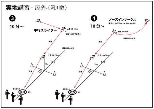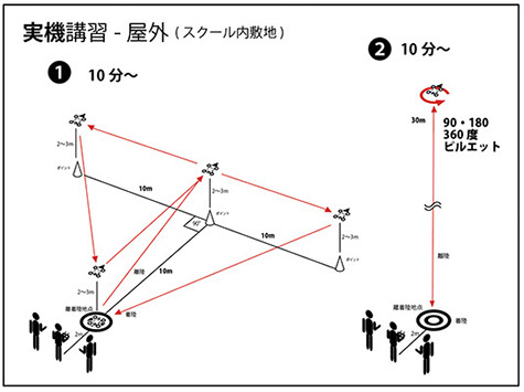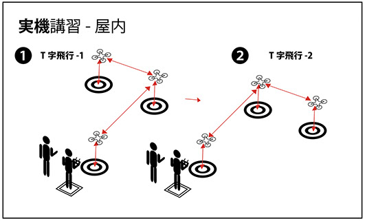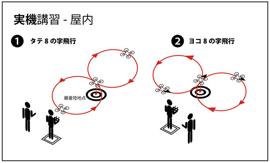 離着陸5回、ホバリング30秒、左右・前後5回、3地点移動5回、8の字5回。